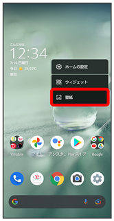 - ホーム画面で、アイコン/ウィジェットをロングタッチ