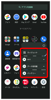 クイック設定パネルが表示されます。