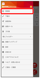 - 受信箱画面でメールの