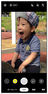 - 画面下部の撮影モードを左右にドラッグしてポートレートを選択すると、被写体の顔にピントを合わせ、背景をぼかした写真を撮ることができます。