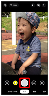- 写真撮影画面の操作について詳しくは、「写真撮影画面(アウトカメラ/インカメラ)の見かた」を参照してください。
