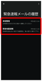 緊急速報メール受信メッセージ一覧画面が表示されます。