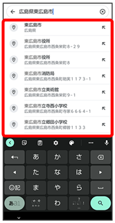 - 選択候補から住所や都市、施設名などをタップ