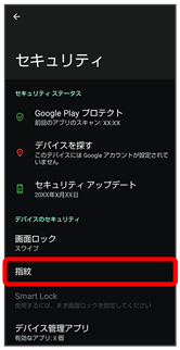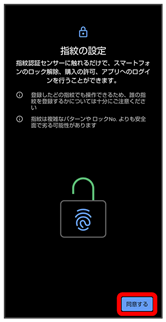 - 指紋センサーに指を触れたまま指紋の登録や認証を開始すると、起動できない場合があります。指を離し、再度操作してください。