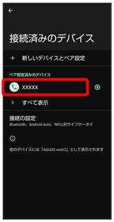 - 接続済みのデバイス画面で、ペア設定を解除する機器の