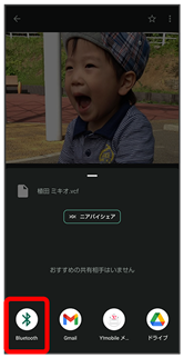 - Bluetoothが表示されていないときは、共有メニューを上にフリックすると表示されます。