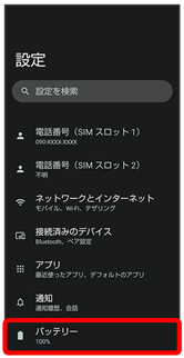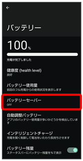 )が切り替わります。 - 充電を開始すると、バッテリーセーバーが自動的に無効になります。