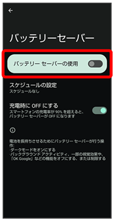 - バッテリー セーバーの使用をタップするたびに、有効(