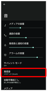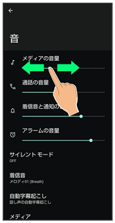 | メディアの音量 | 音楽や動画などの音量を設定します。 | |