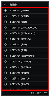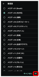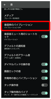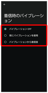 - バイブレーション OFF/常にバイブレーションを使用/バイブレーションから着信音