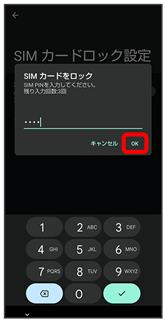 PINコードを操作するときや、SIMカードロック設定時に電源を入れたときは、PINコードの入力が必要になります。