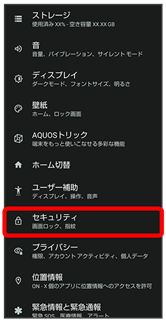 画面のロックや暗証番号など、セキュリティに関する設定ができます。