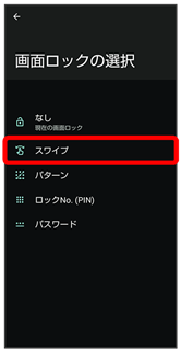 - 変更前の画面ロック解除方法がなしまたはスワイプ以外のときは、ロックを解除する操作が必要です。