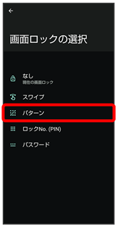 )が切り替わります。 - 画面ロック解除方法がパターンのときに設定できます。