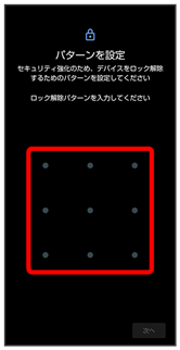 - パターンを指でなぞって画面ロックを解除するように設定する