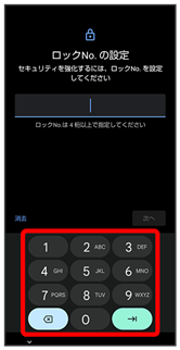 - ロックNo.(PIN)で画面ロックを解除するように設定する