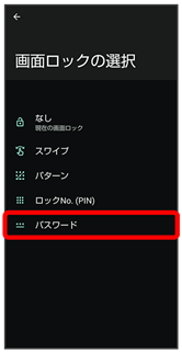 - パターン/ロックNo.(PIN)/パスワードを入力