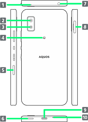 | 画面を消灯/点灯します。長押しすると、電源をON/OFFまたは再起動したり、設定したアプリを起動できます。2 |