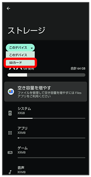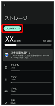 また、システムデータやアプリ、撮った写真や動画などのデータを保存する場所として、内部ストレージが利用できます。