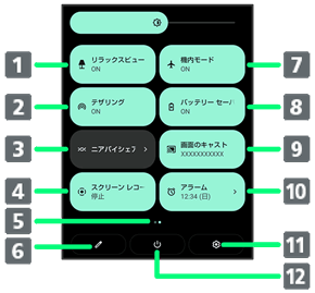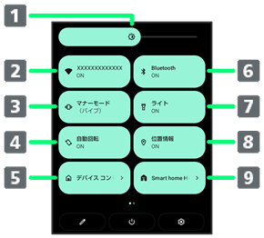 クイック設定パネルでは、アイコンをタップして機能のON/OFFなどを設定できます。