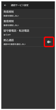 | 着信規制 | ・全ての着信を規制 すべての着信を規制します。 ・国際着信を全て規制 日本以外での着信を規制します。 ・着信を規制しない 着信規制をすべて解除します。 |