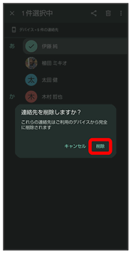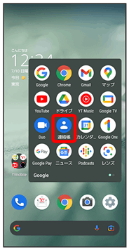 次の操作を行うと、サーバーに保存されたGoogleの連絡先と本機の電話帳を同期できます。Google アカウント以外と同期するときでも、あらかじめ、Google アカウントでログインしておいてください。