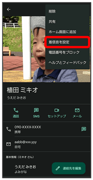 また、登録した連絡先ごとに着信音を設定することもできます。