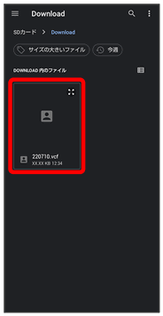 端末設定の「データ引継」を利用して、本機やほかの携帯電話でSDカードに保存した電話帳データを読み込むことができます。