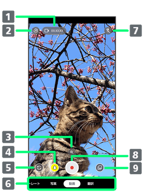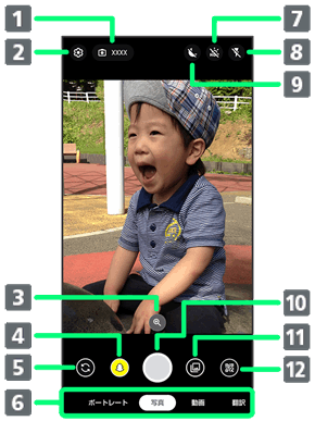 写真撮影画面(アウトカメラ/インカメラ)の見かた
