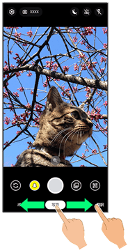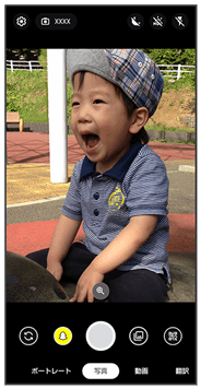 左右にドラッグして撮影モード(ポートレート/写真/動画/翻訳)を切り替えます。