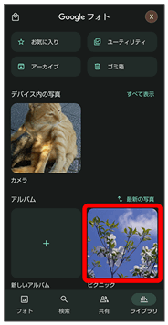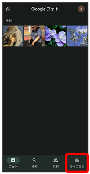 • ↓フォト画面でライブラリ