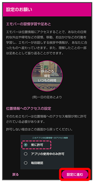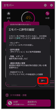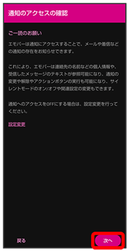 アプリをはじめて起動したときは、動作について設定が必要になります。アプリによって、表示される確認画面の種類や内容は異なります。ここでは、「アプリに必要な許可」の確認画面について説明します。