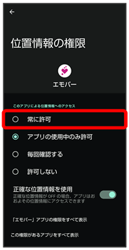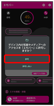 アプリが本機のデータやカメラなどを利用することを許可します。
