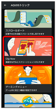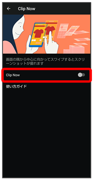 • Clip Nowをタップするたびに、有効(aquos-wish2_icon_251)/無効(aquos-wish2_icon_128)が切り替わります。