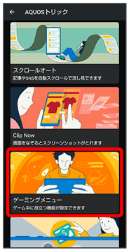 | 使い方ガイド | ゲーミングメニューの使い方を確認できます。 | |