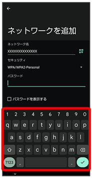 表示されたQRコードを他の機器で読み取ることにより、パスワードが共有されます。