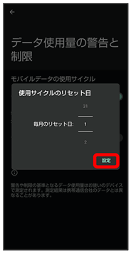 モバイルデータ通信の使用量(1ヵ月単位)を確認したり、使用を制限したりすることができます。