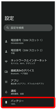 | バッテリー使用量 | 電池の使用量を確認できます。 | |