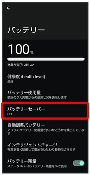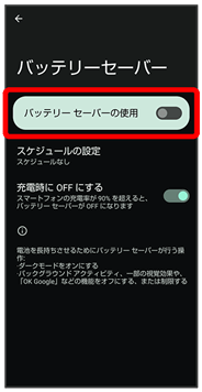 | バッテリーセーバー | 本機の一部の機能を制限して、電池の消費を抑えます。 | |