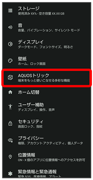 AQUOS純正のホームアプリへの切り替えや設定の変更が行えます。