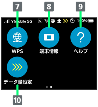 | 6 | 低速化が開始されるまでの残りデータ通信量が規定の値になった場合に表示されます。 |