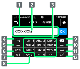 | 英字の入力と数字の入力画面を切り替えます。 | ||