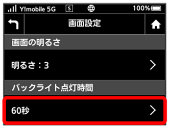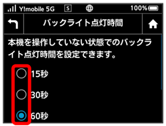- お買い上げ時のバックライト点灯時間は60秒に設定されています。