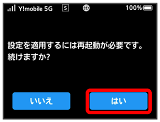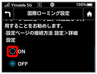 ONになり、本機の再起動後に海外でローミングが利用できるようになります。
