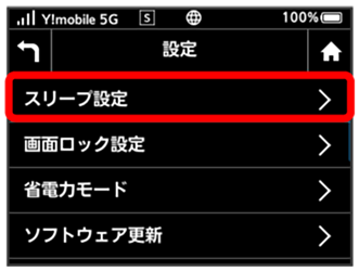 本機が無線LAN端末と接続されていない状態で、本機の操作を一定時間行わなかったときや、本機を充電していないときは、省電力のためにスリープモードになります。スリープモードに移行するまでの時間を設定できます。また、スリープ設定をOFFに設定し、スリープモードに移行しないようにすることもできます。