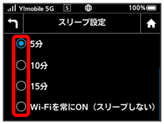 - お買い上げ時のスリープ設定は5分に設定されています。