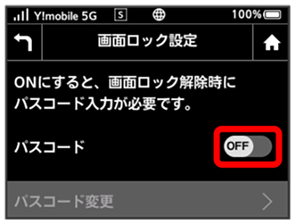 - お買い上げ時のパスコード入力はOFFに設定されています。