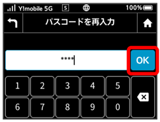 - 再入力したパスコードが最初に入力したパスコードと異なる場合、パスコードが一致しないことをお知らせする画面が表示され、OKをタップすると手順