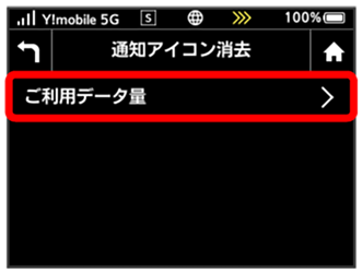 - この操作では、ステータスバーに表示されている通知アイコンのみ消去することができます。タッチメニューの「データ通信量設定」アイコンは消去できません。
