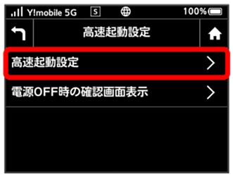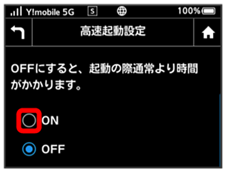 高速起動をONにすることで、電源ON時の時間を短縮することができます。